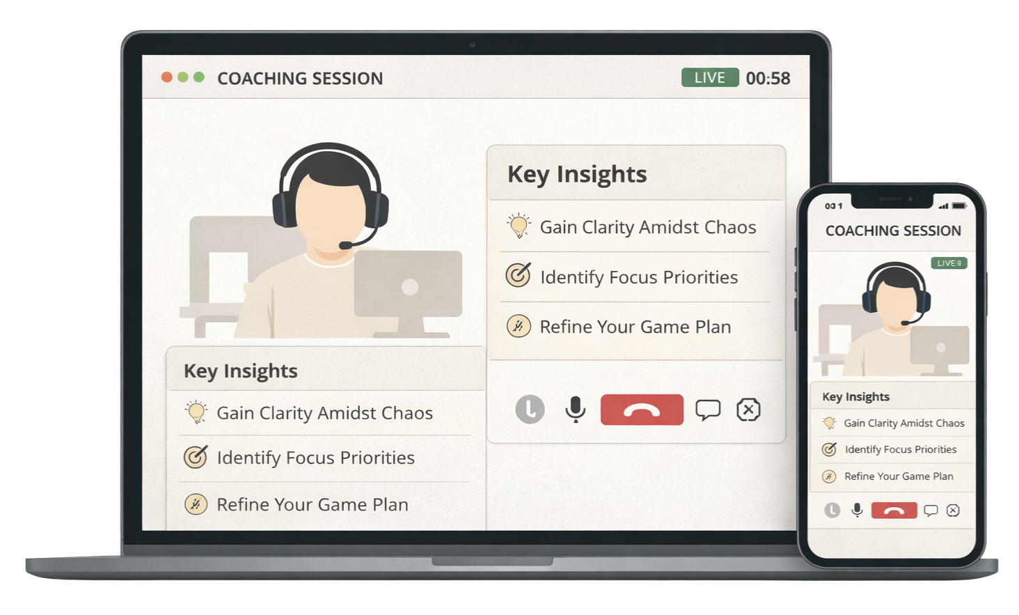 These sessions exist to help you untangle what’s actually blocking your momentum. Think of them as strategic sparring sessions to gain clarity around what matters most.
